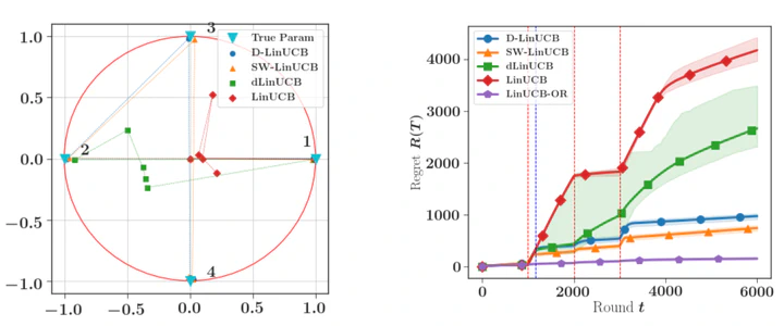 We consider a stochastic linear bandit model in which the available actions correspond to arbitrary context vectors whose associated rewards follow a non-stationary linear regression model. In this setting, the unknown regression parameter is allowed to vary in time. To address this problem, we propose DLinUCB, a novel optimistic algorithm based on discounted linear regression, where exponential weights are used to smoothly forget the past. This involves studying the deviations of the sequential weighted least-squares estimator under generic assumptions. As a by-product, we obtain novel deviation results that can be used beyond non-stationary environments. We provide theoretical guarantees on the behavior of DLinUCB in both slowly-varying and abruptly-changing environments. We obtain an upper bound on the dynamic regret that is of order $d^{\frac{2}{3}} B_T^{\frac{1}{3}} T^{\frac{2}{3}}$, where $B_T$ is a measure of non-stationarity ($d$ and $T$ being, respectively, dimension and horizon). This rate is known to be optimal. We also illustrate the empirical performance of DLinUCB and compare it with recently proposed alternatives in simulated environments.